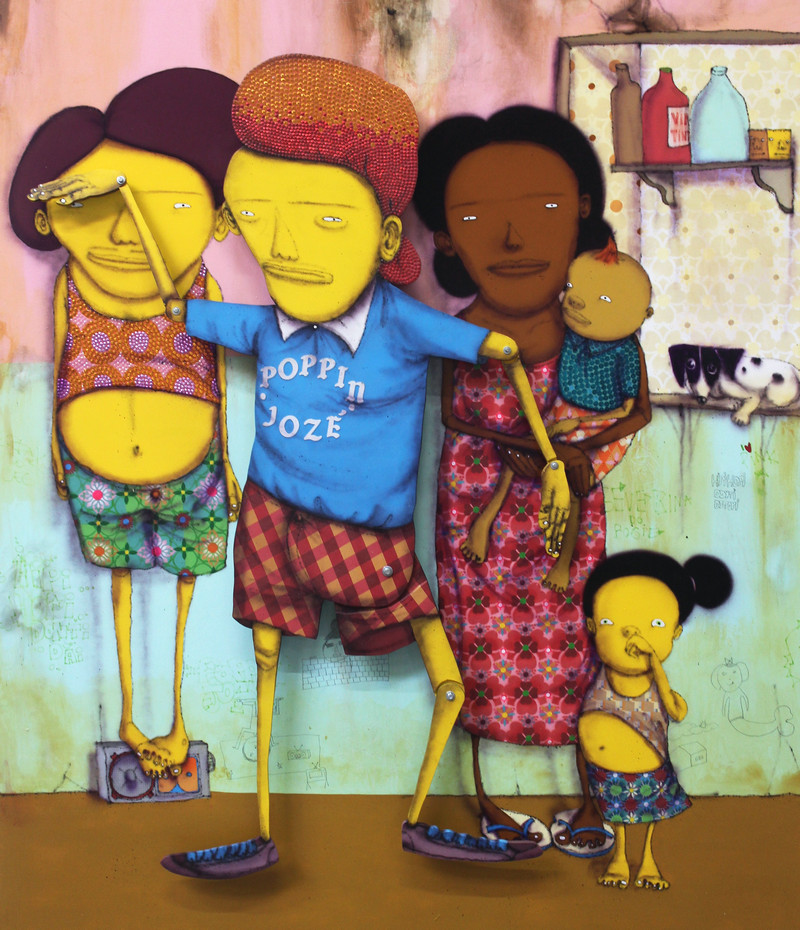 Os Gemeos, qui signifie “Les Jumeaux” en portugais, sont originaires de São Paulo, au Brésil. Ils ont commencé à graffer dans les rues de la ville dans les années 1980, s’inspirant des graffitis américains tout en intégrant des éléments de la culture brésilienne. Leurs œuvres, reconnaissables par leurs personnages de visages jaunes aux yeux ronds, sont imprégnées de couleurs vives et d’une esthétique qui évoque l’art populaire brésilien.